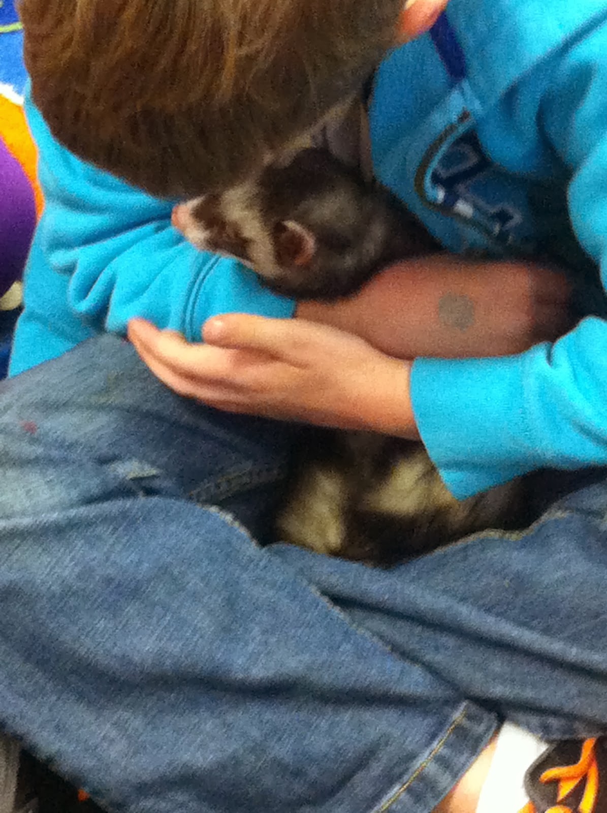 Before our star guests arrived, we wrote down some questions on the board of what we wanted to learn about the ferrets before they arrived. Our questions ranged from wanting to know what they eat to have you ever lost them in the house? Firsties are very curious critters themselves. They came up with several ideas before it was all over with.